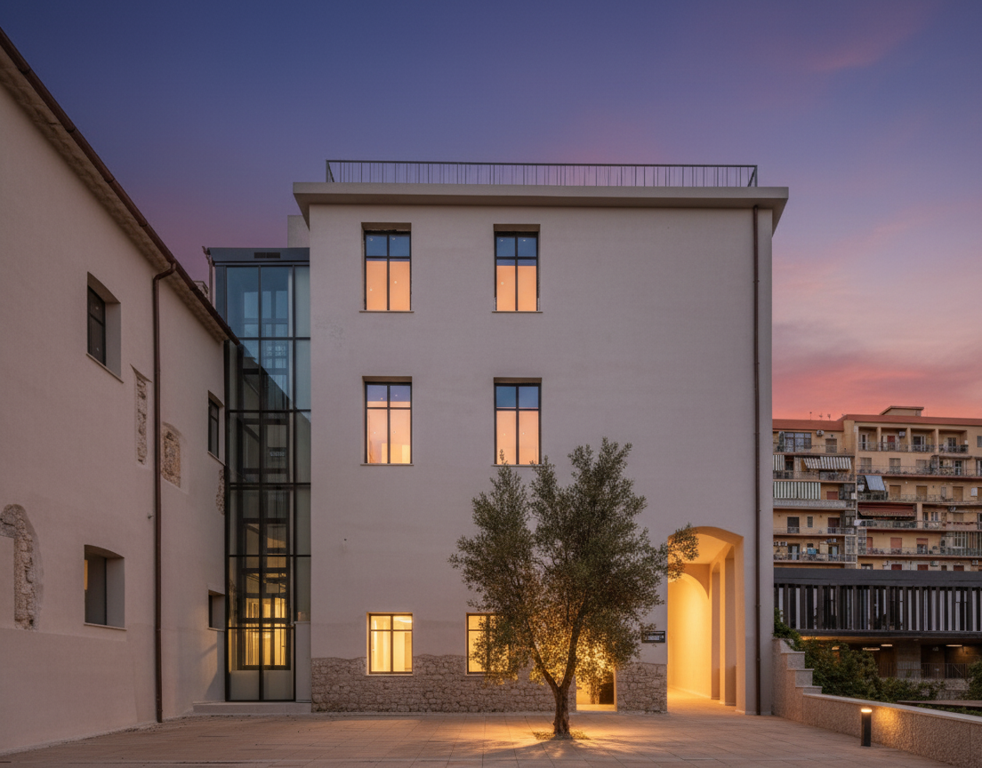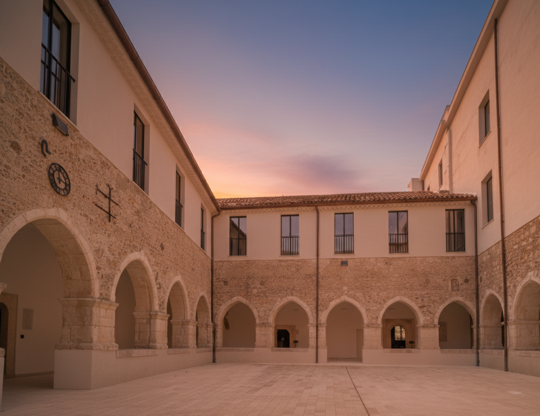 Il progetto ha preservato l’antico chiostro e gli elementi originari del convento, integrandoli con un nuovo edificio progettato in perfetta armonia con gli spazi esistenti.