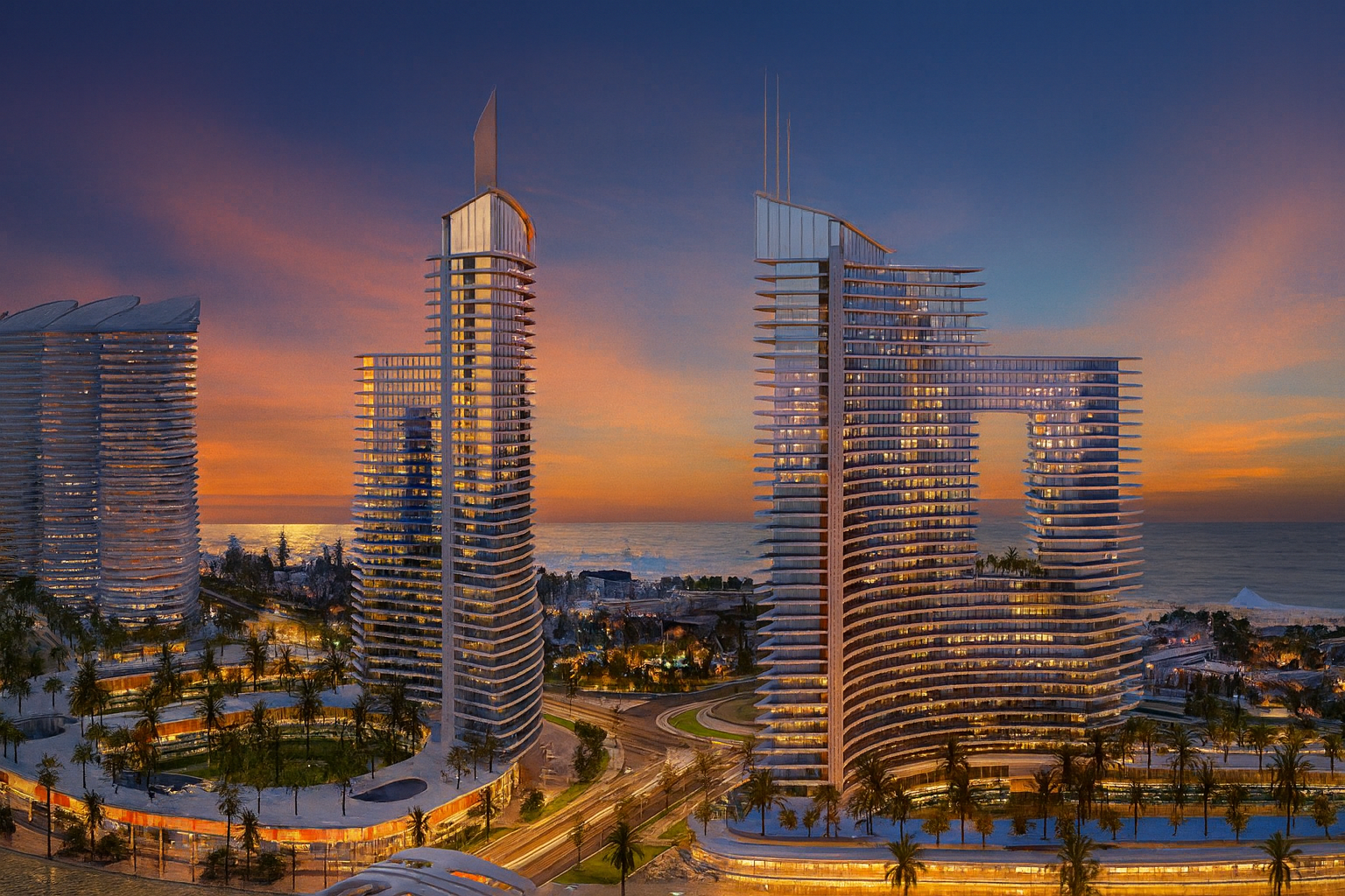Tra i progetti più recenti di New El Alamein, The Gate Towers si distingue per la posizione privilegiata affacciata sul Mediterraneo e per un concept che integra residenziale, servizi e un’area commerciale di richiamo internazionale.