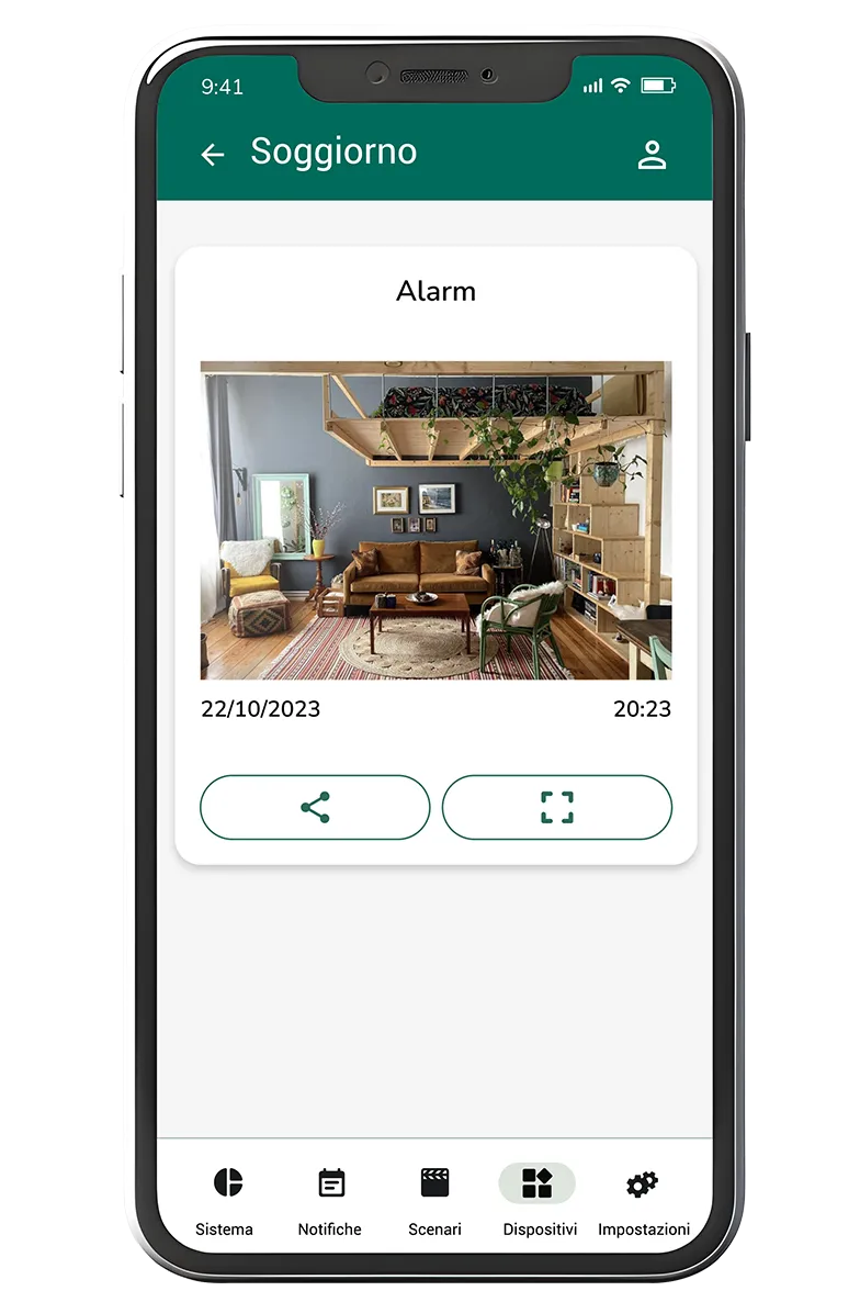 In caso di intrusione o di un allarme tecnico – come rilevamento di fumo, allagamento o fuga di gas – riceverai notifiche istantanee direttamente sul tuo smartphone, così sarai sempre informato in tempo reale.