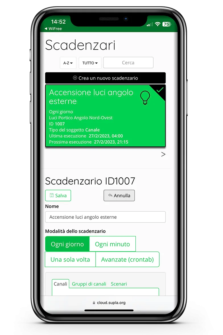 Gestione delle luci da qualunque luogo e in qualsiasi momento, con attenzione al risparmio energetico.